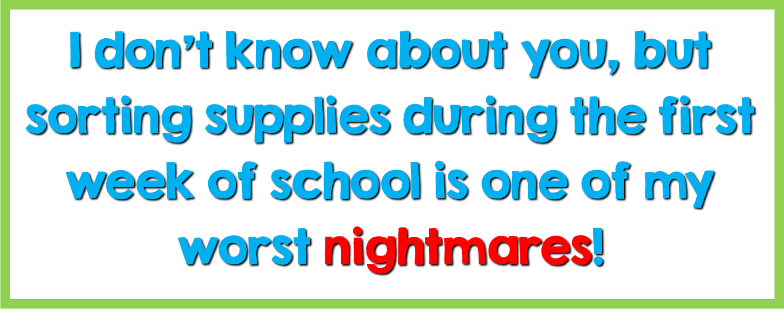 I do this on Back to School night. The students bring their supplies and the parents help them walk around and drop off their supplies and I have a check off sheet by each box so that I know how hasn't brought something. Works great! Now, to just figure out a way to put it all away!!
