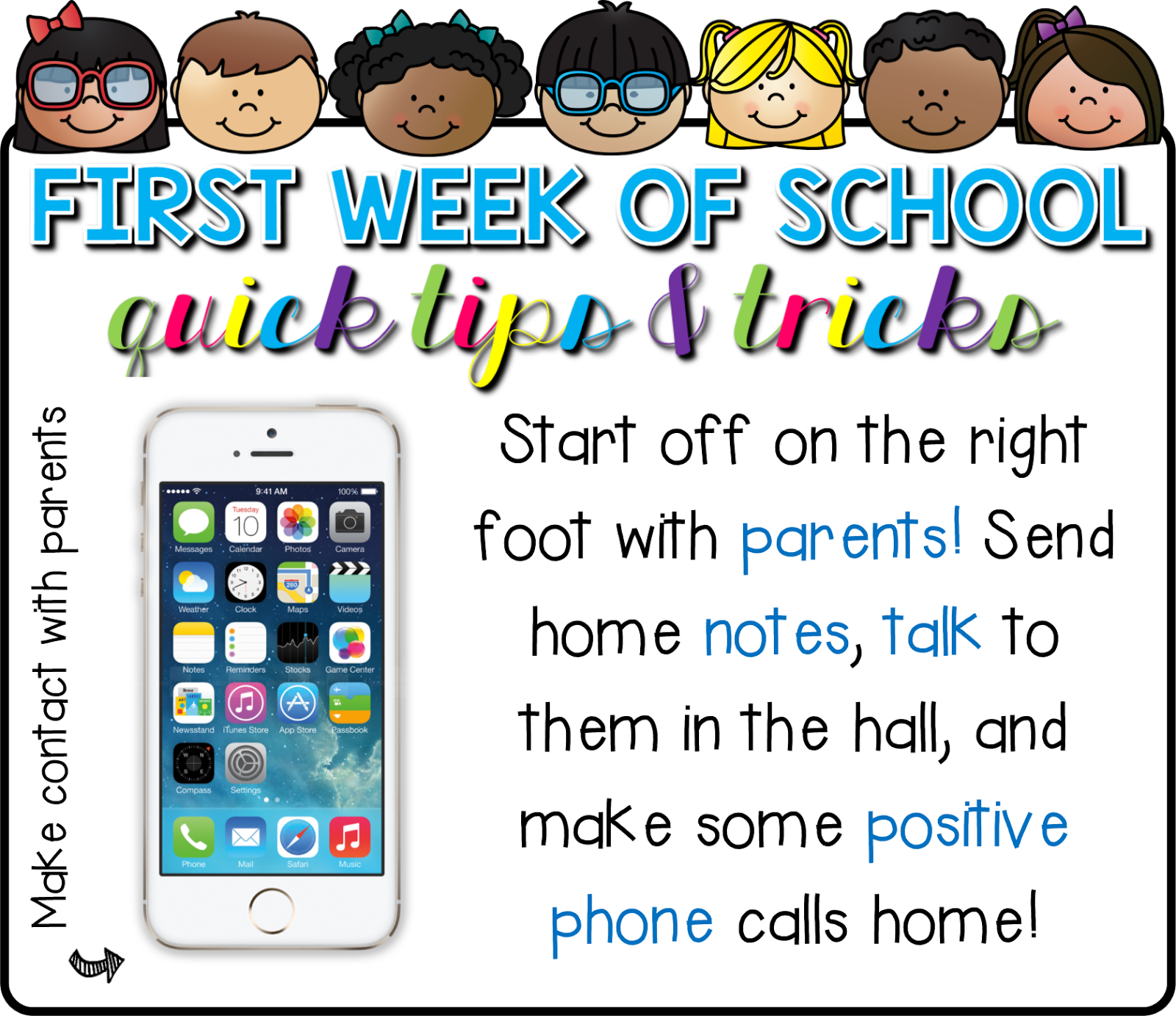 Building relationships with parents and caretakers is key to having a great year. Get to know them all! Make phone calls, send home POSITIVE notes about their child, and make time to talk to them when you see them. Yes, the first week is a super busy week for us teachers, but you will not regret making time to interact and build meaningful relationships with your students’ parents. When you have a great relationship with your students’ parents, and they know you truly care about their child, they will be more receptive to academic or behavioral conversations about their child in the future that may not be so positive.