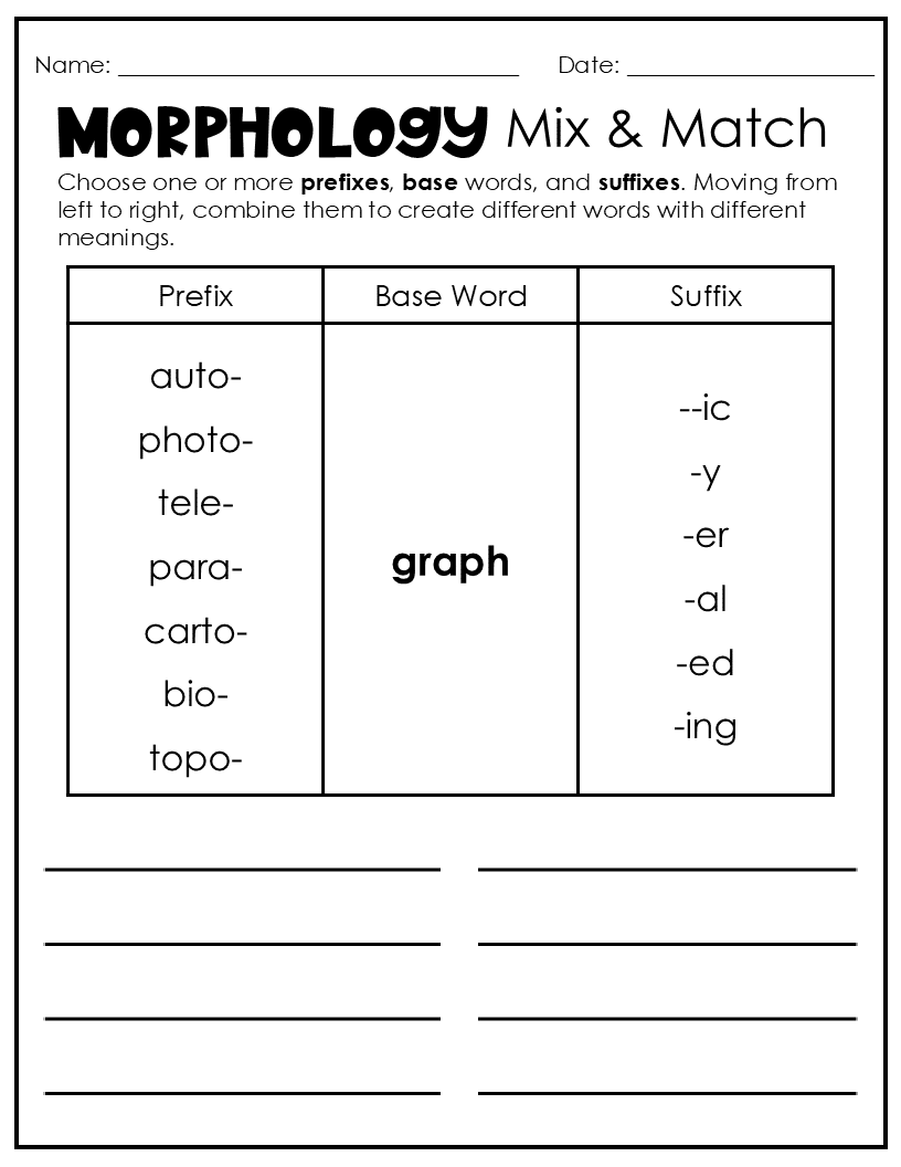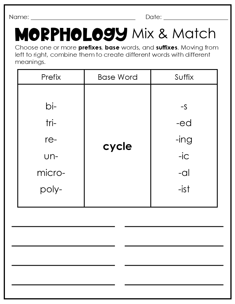 Recognizing consistent patterns in prefixes, roots, and suffixes helps students spell words correctly and use them in their own writing.