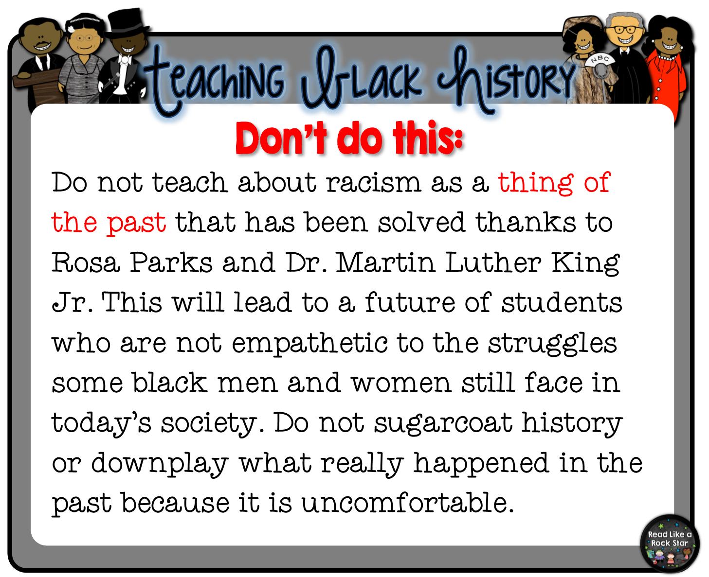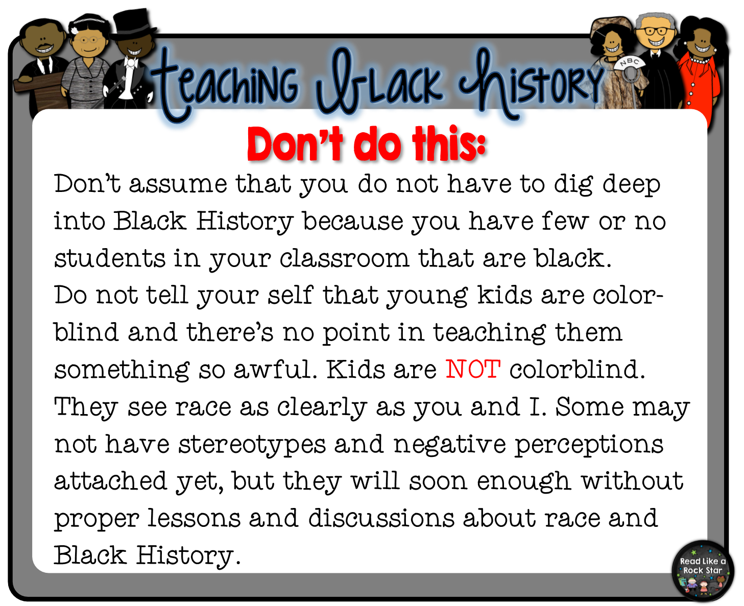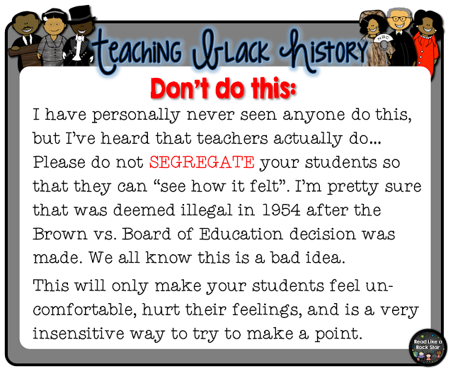 My friend, Tamara Russell from Mrs. Russell’s Room, inspired and encouraged me to write this post. I think it was important, as a teacher of color, for me to share my thoughts on how I feel Black History should be taught. I, of course, don’t speak for all black teachers, only myself. Here are some dos and don’ts that I thought were important to share with my fellow teacher friends!