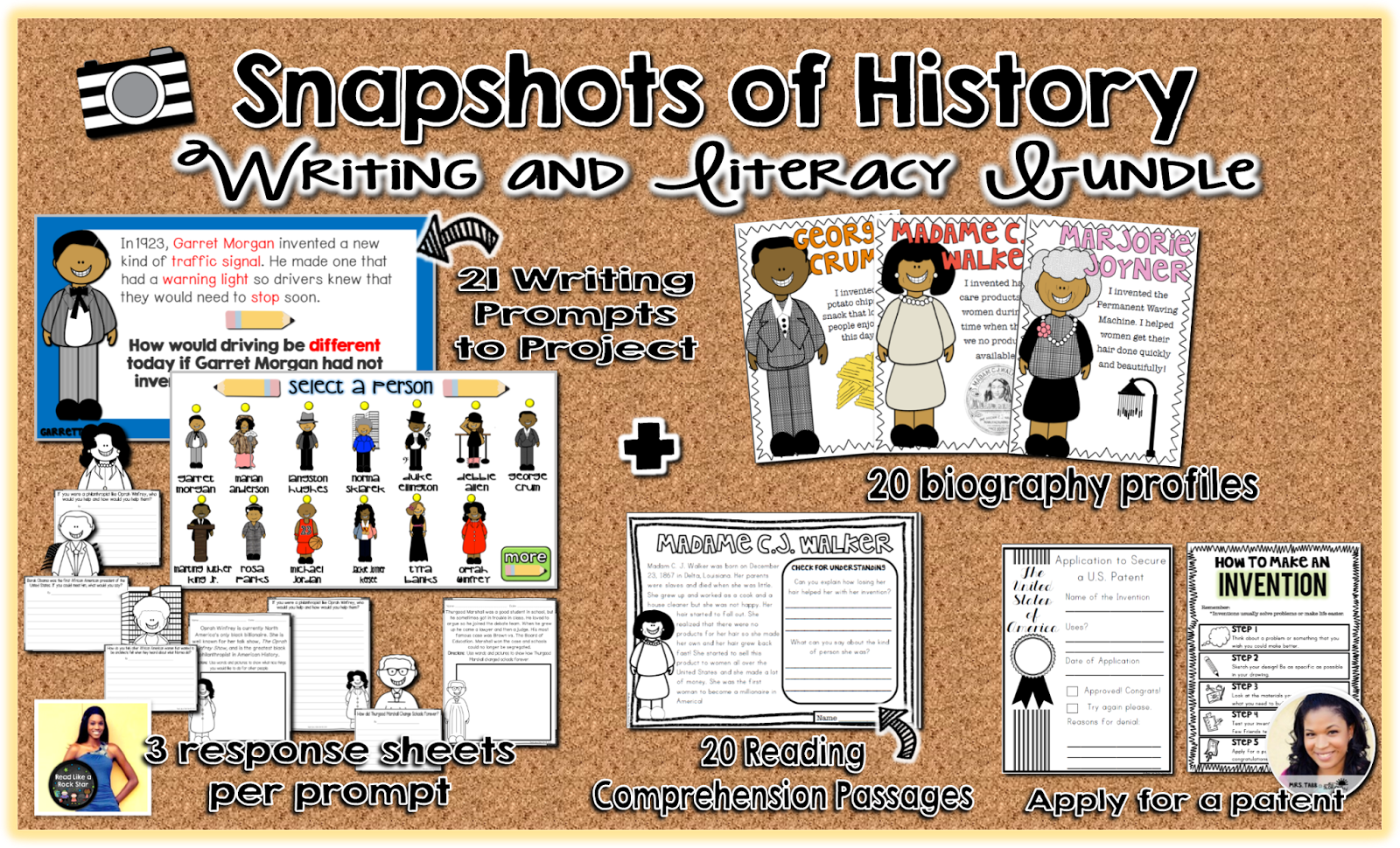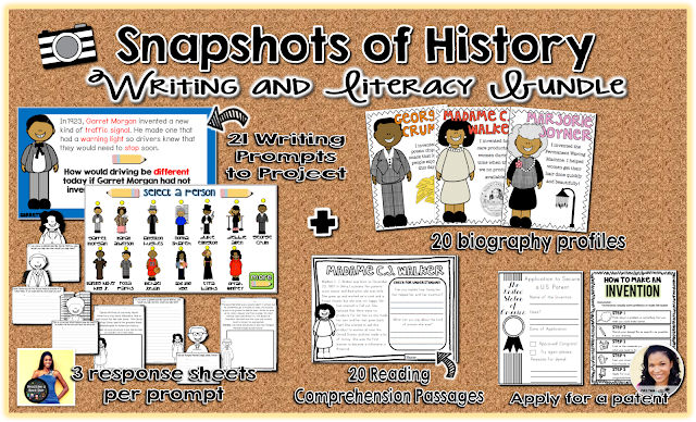 This is a great resource to present various African American men and women to your students throughout the school year. Use PowerPoint to project a mini biography about each person and then have your students respond to the writing prompt given.